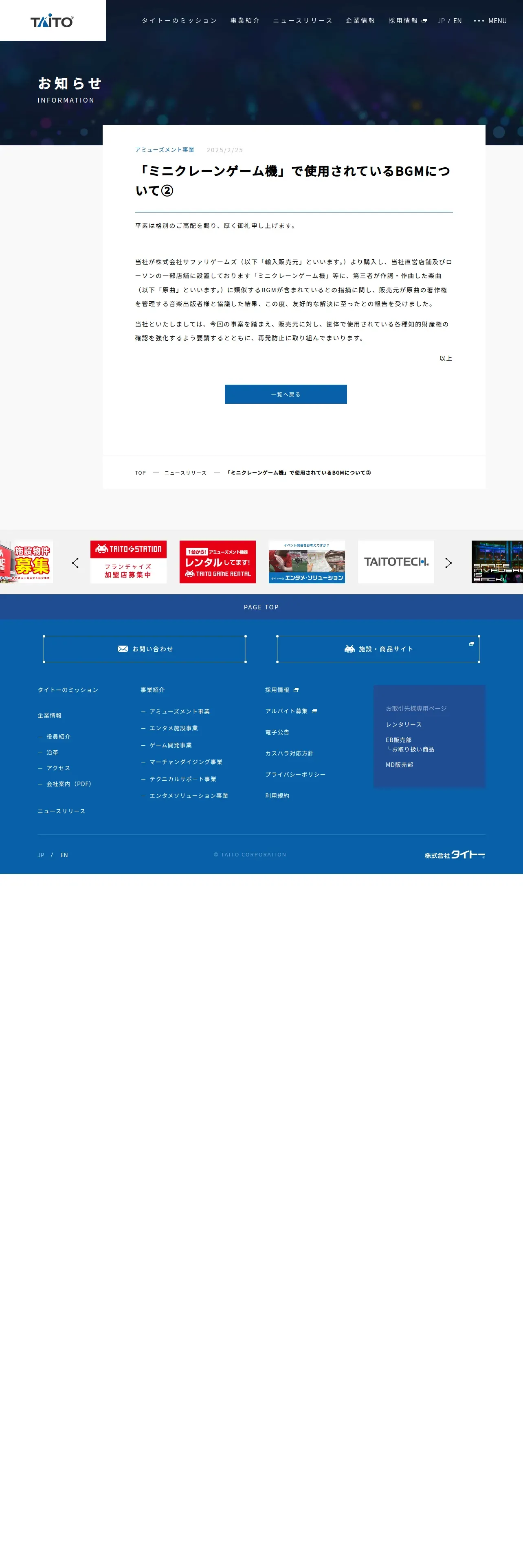 https://www.taito.co.jp:443/corporate/news_release/26755