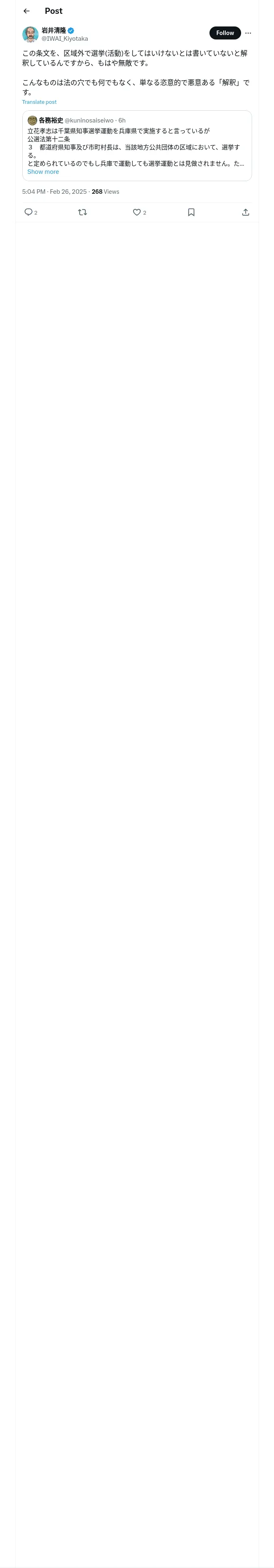 https://x.com:443/IWAI_Kiyotaka/status/1894659696696680789