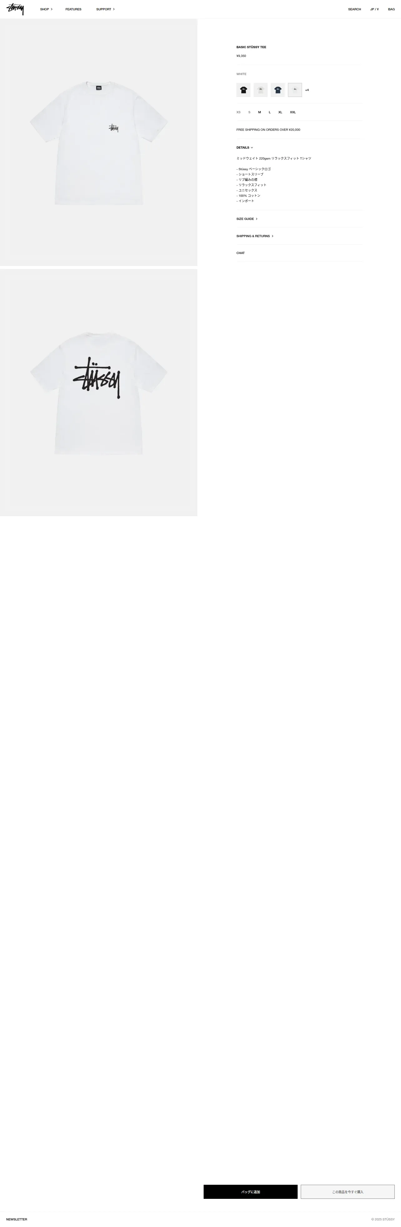 https://jp.stussy.com:443/products/1905000-basic-stussy-tee-white