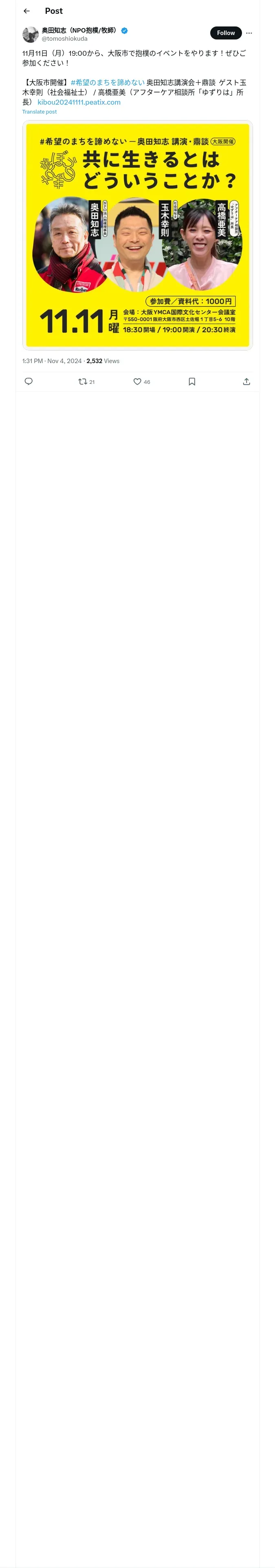 取得元URL: https://x.com:443/tomoshiokuda/status/1853294010057752644