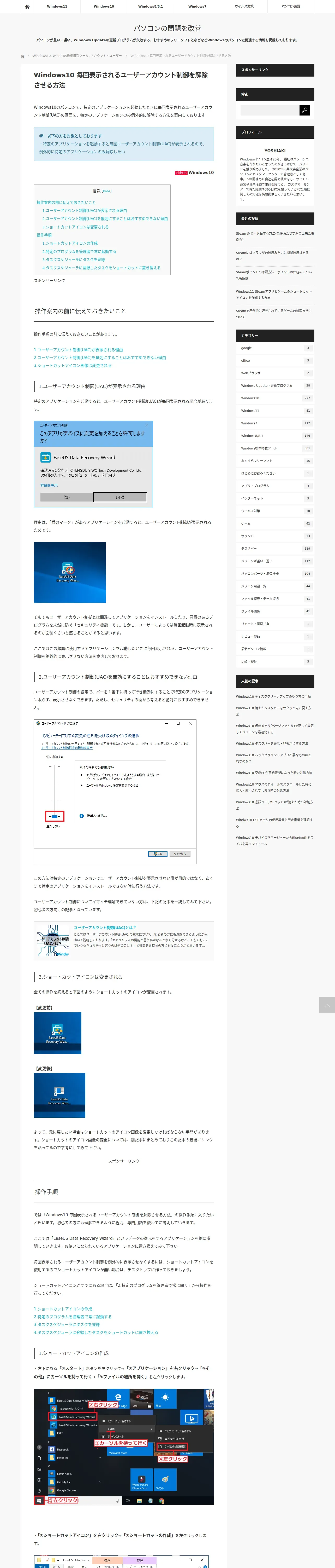 取得元URL: https://pc-kaizen.com:443/windows10-windows10-how-to-cancel-uac-displayed-every-time