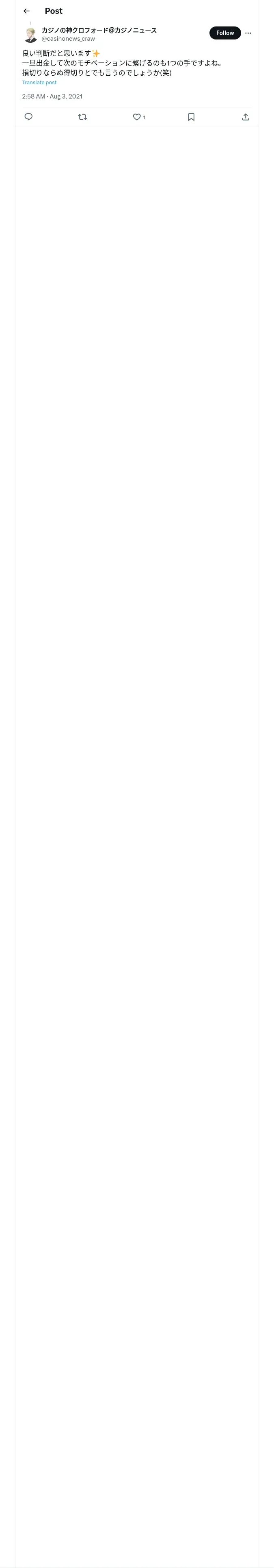 取得元URL: https://x.com:443/casinonews_craw/status/1422255507436236803