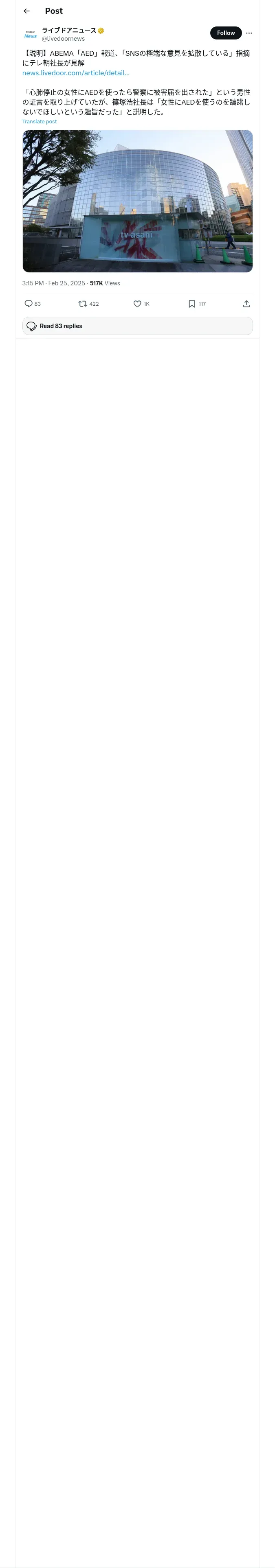 https://x.com:443/livedoornews/status/1894270014313959498