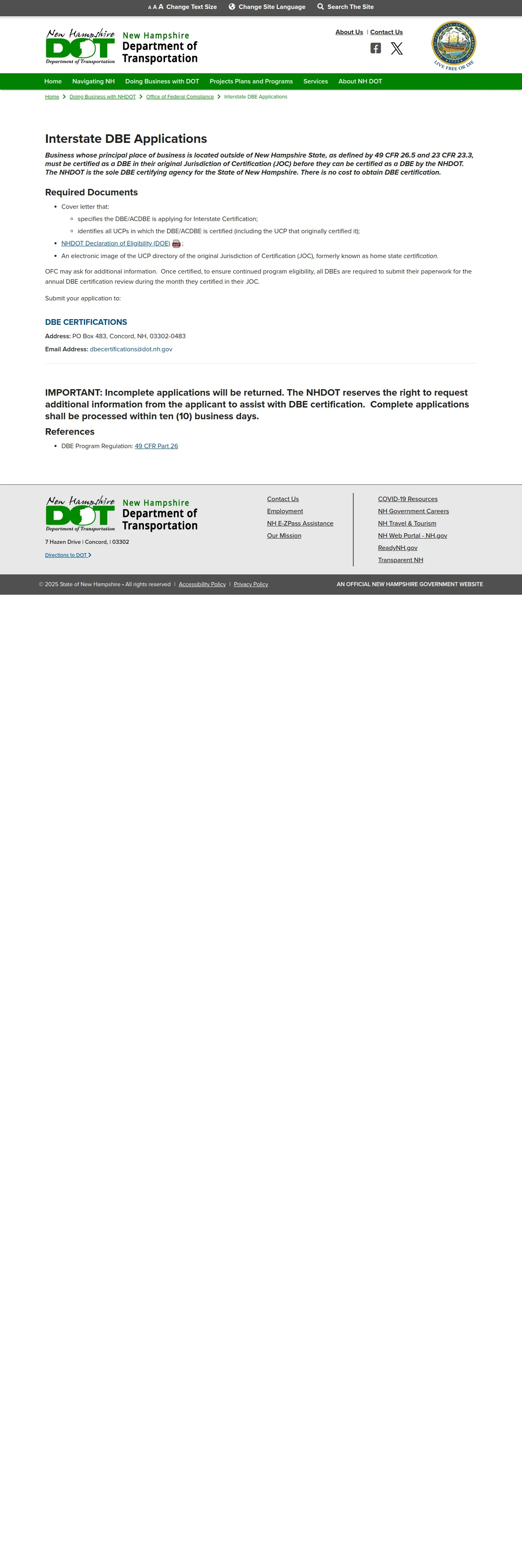 https://www.dot.nh.gov:443/doing-business-nhdot/office-federal-compliance/interstate-dbe-applications