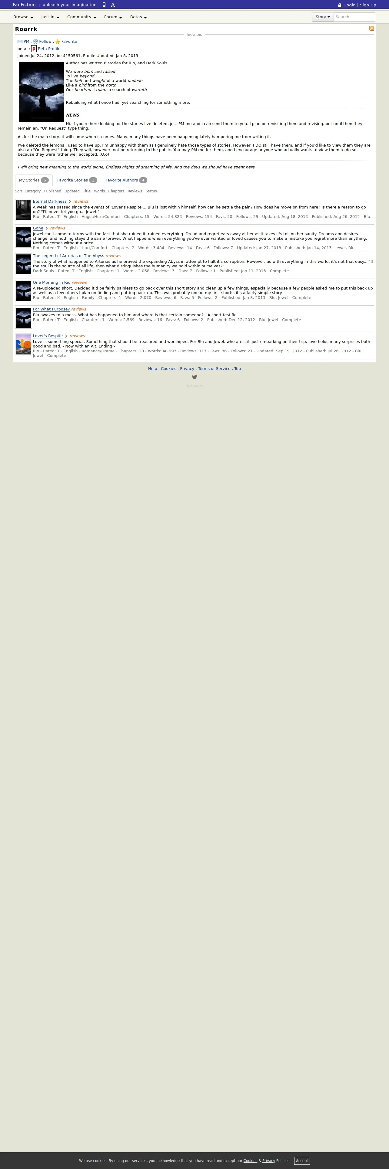 https://www.fanfiction.net:443/u/4150561/Roarrk