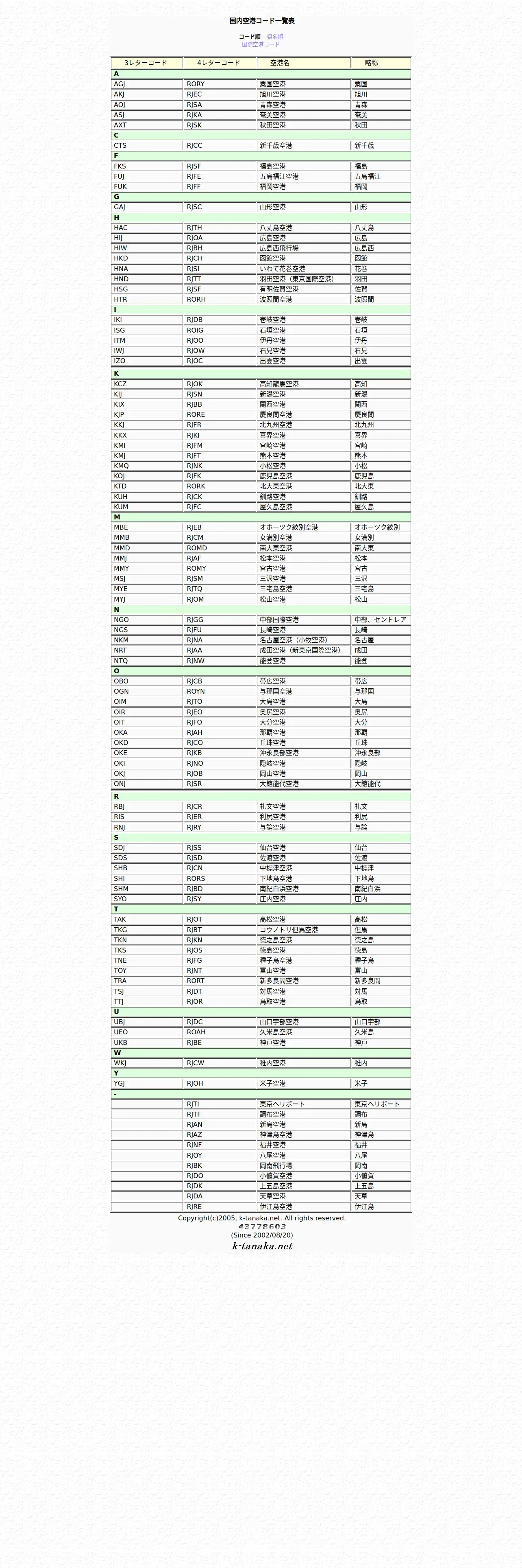 https://www.k-tanaka.net:443/airport/airport_code.html