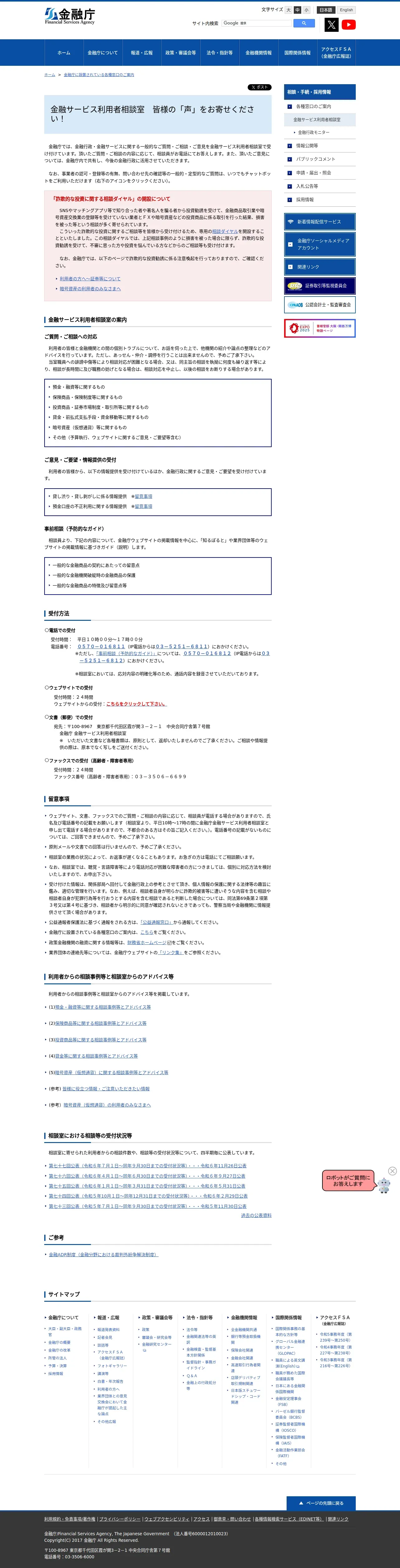 https://www.fsa.go.jp:443/receipt/soudansitu/index.html