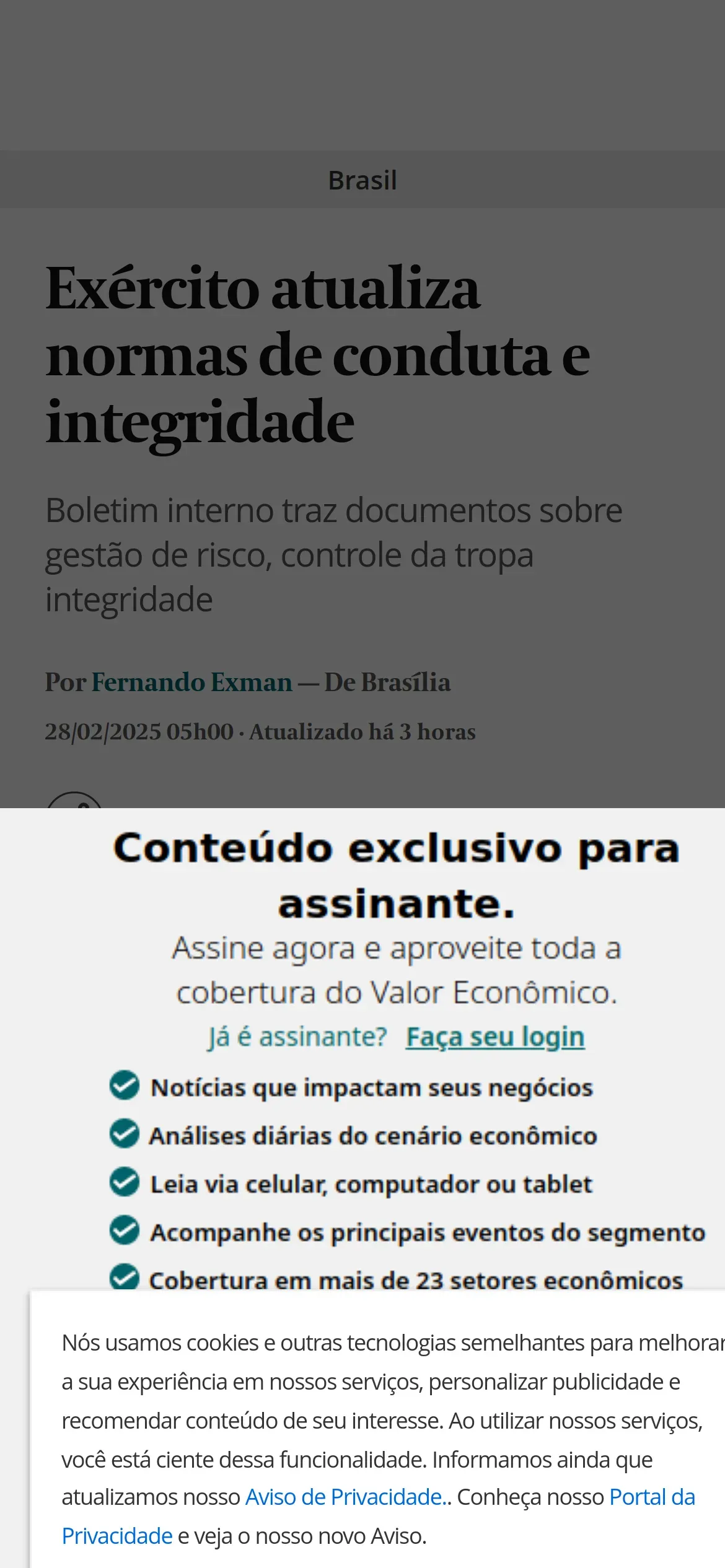 取得元URL: https://valor.globo.com:443/brasil/noticia/2025/02/28/exercito-atualiza-normas-de-conduta-e-integridade.ghtml