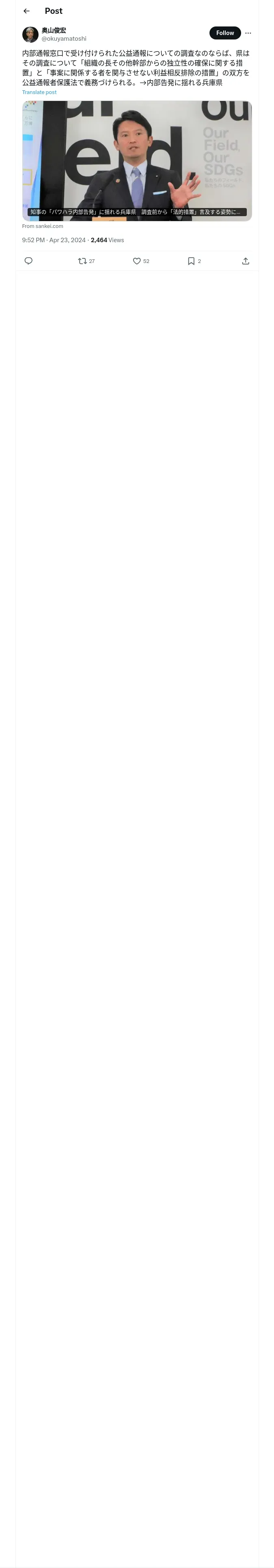 取得元URL: https://x.com:443/okuyamatoshi/status/1782754354250002893