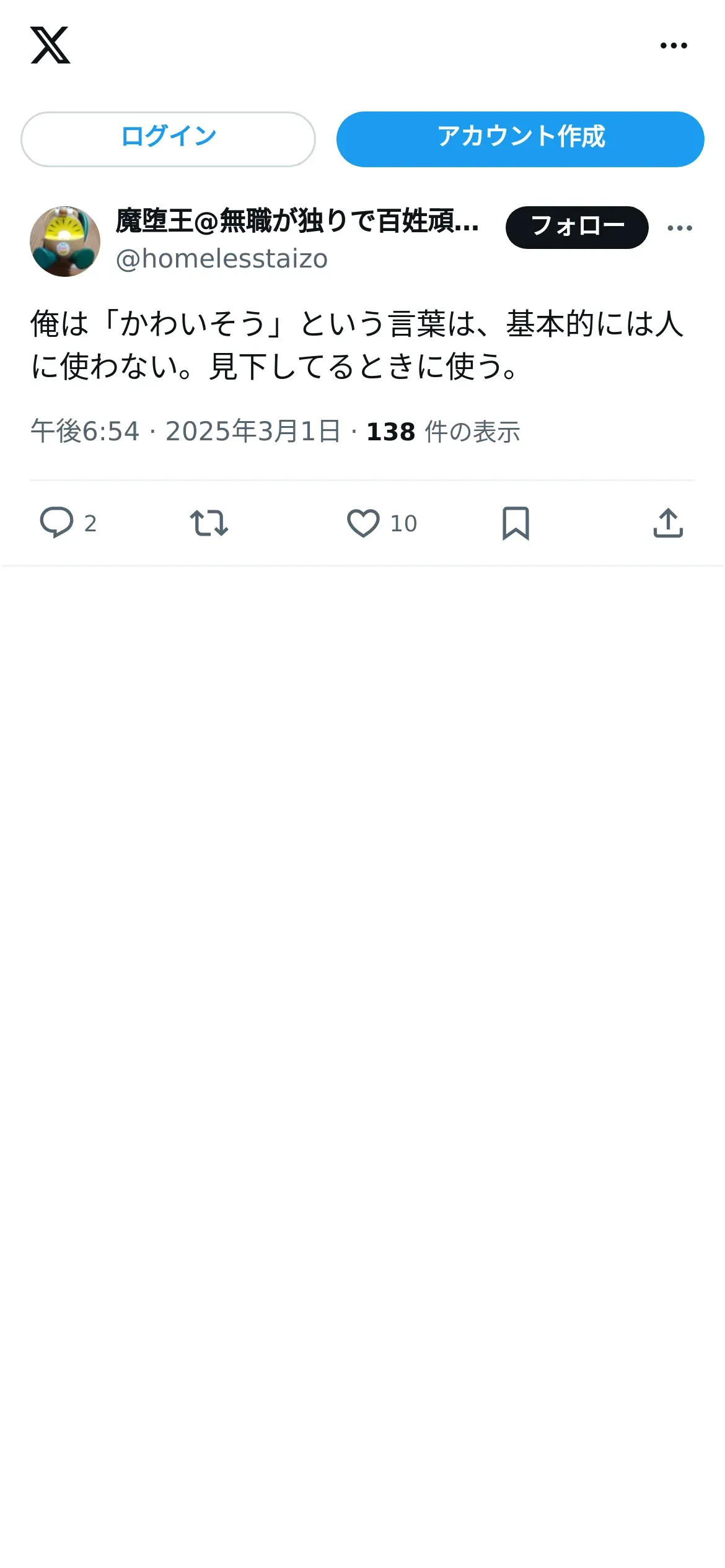https://x.com:443/homelesstaizo/status/1895774692830822862