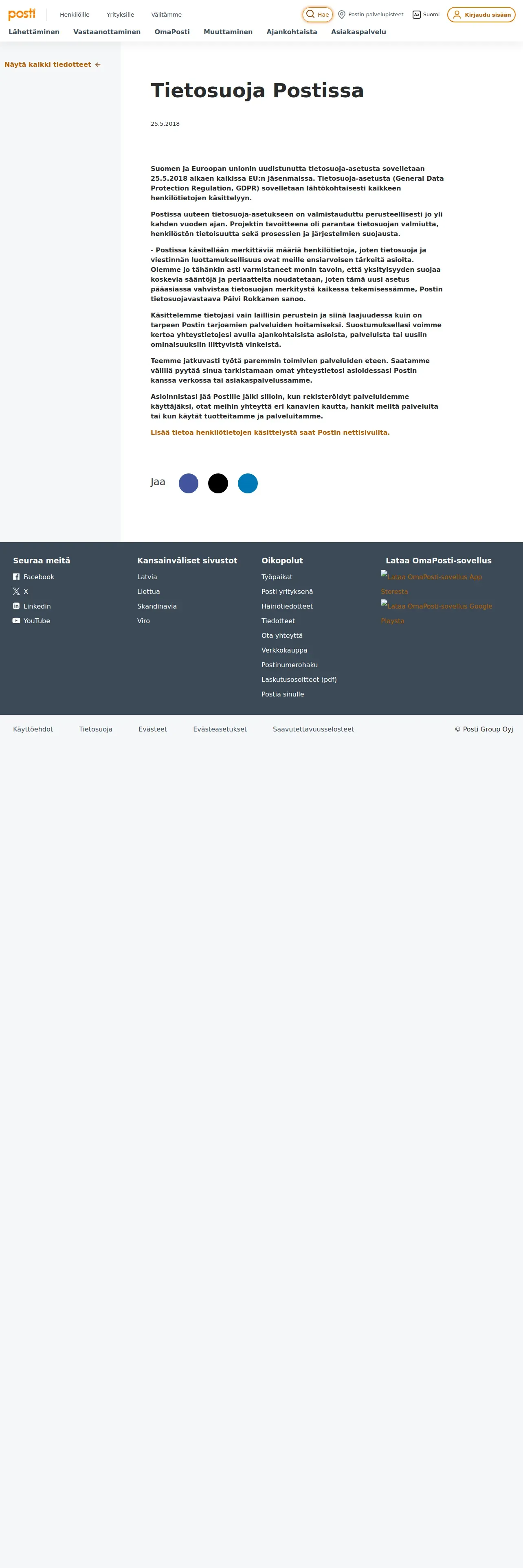 https://www.posti.fi:443/fi/yrityksille/asiakastuki/tiedotteet/20180525_tietosuoja_postissa