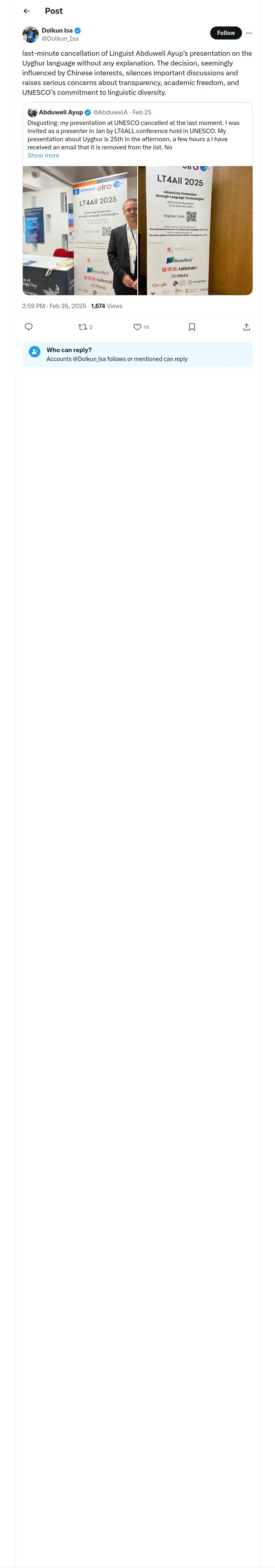 https://x.com:443/Dolkun_Isa/status/1894628445688406216