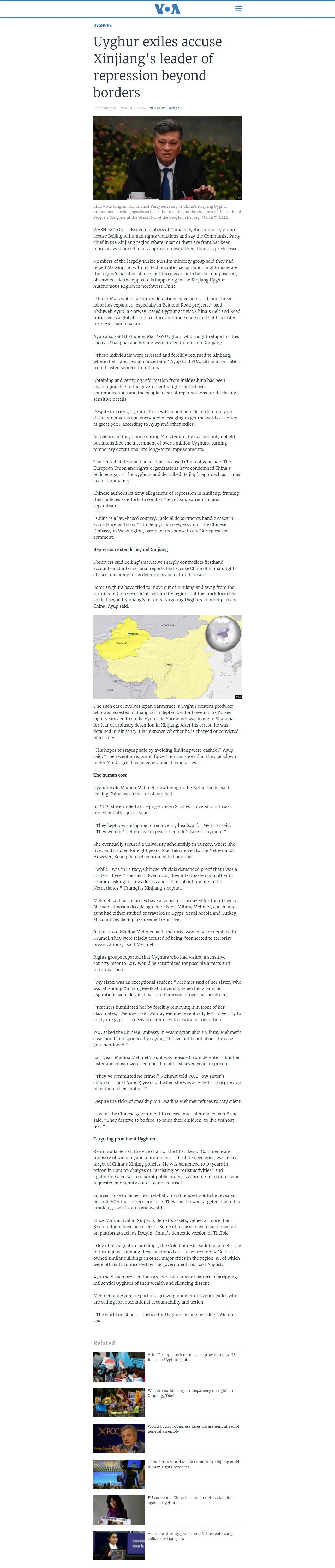https://www.voanews.com:443/amp/uyghur-exiles-accuse-xinjiang-s-leader-of-repression-beyond-borders/7877900.html