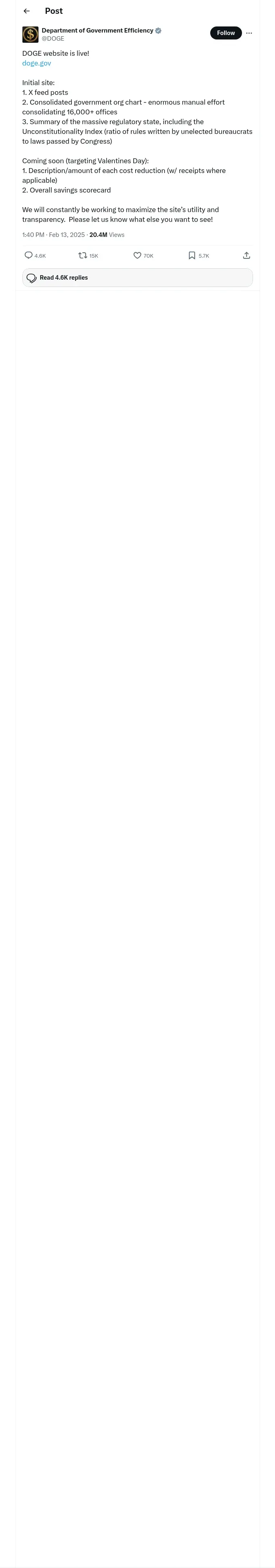 https://x.com:443/DOGE/status/1889897384122982604