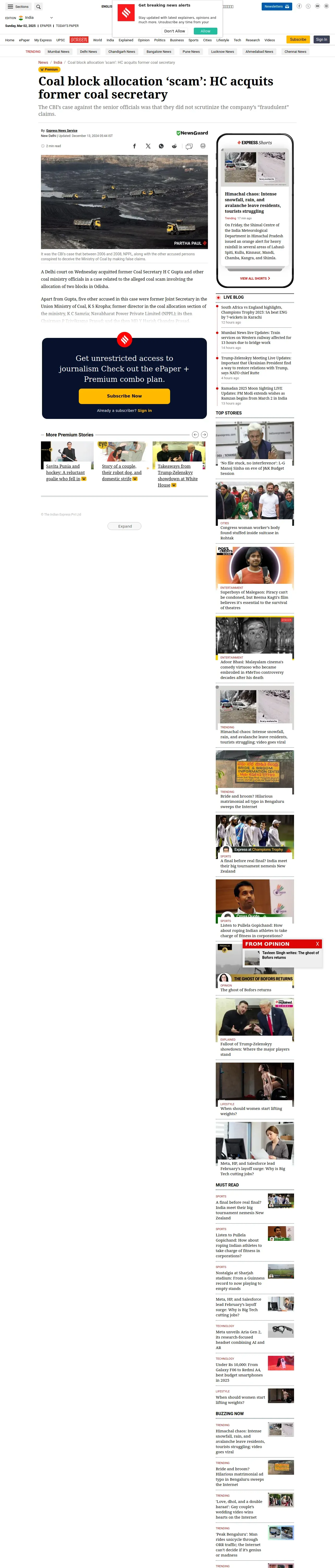 取得元URL: https://indianexpress.com:443/article/india/coal-block-allocation-scam-hc-acquits-former-coal-secretary-9722044/