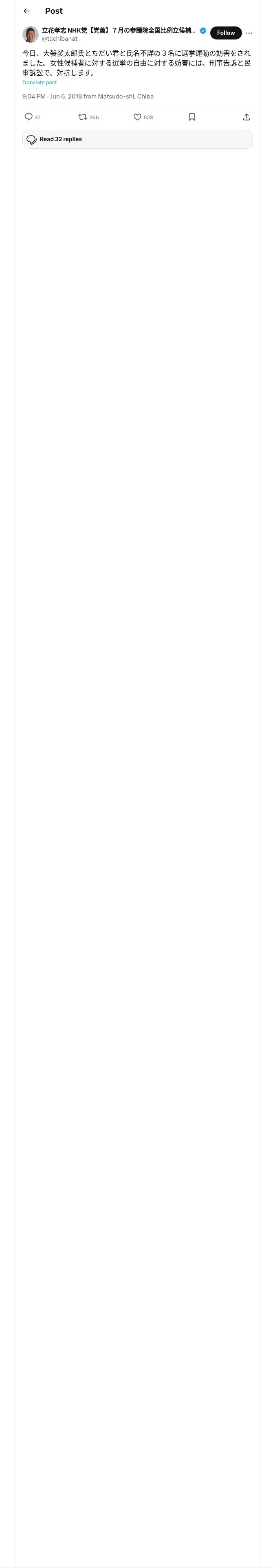 取得元URL: https://x.com:443/tachibanat/status/1004333273714028544