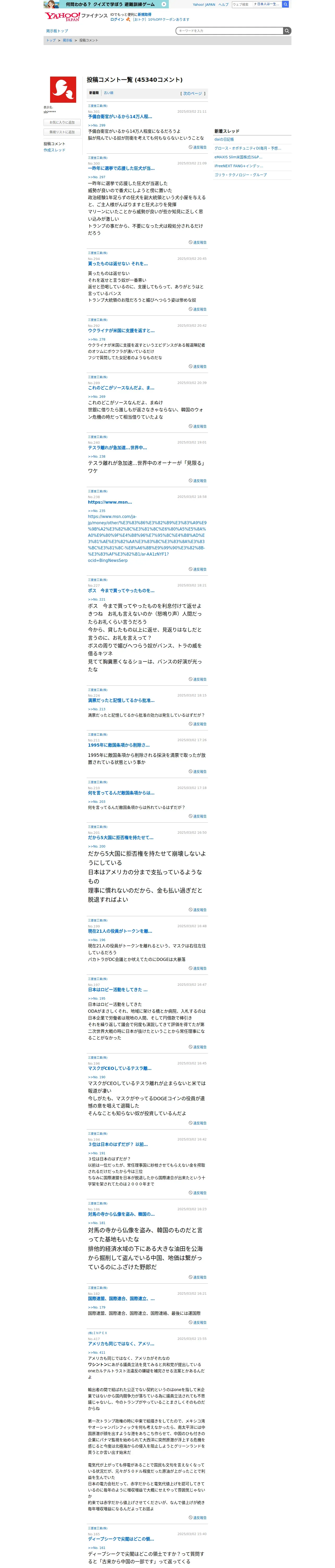 取得元URL: https://finance.yahoo.co.jp:443/cm/personal/history/comment?user=cd68d334148e3584a23f2a787cb85f985cb0c6baf7f62f654f53ce3b69aed829