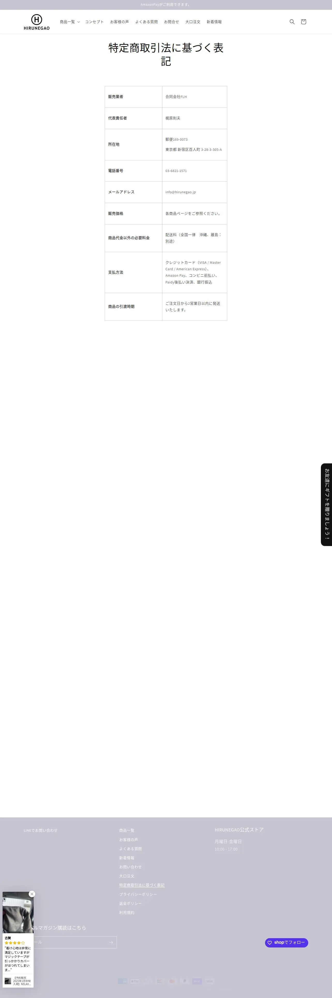 https://hirunegao.jp:443/policies/legal-notice