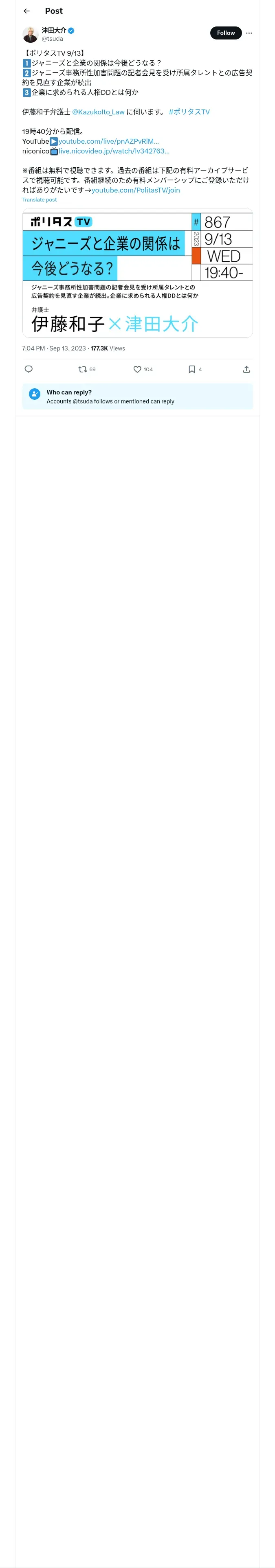 https://x.com:443/tsuda/status/1701899597734638047