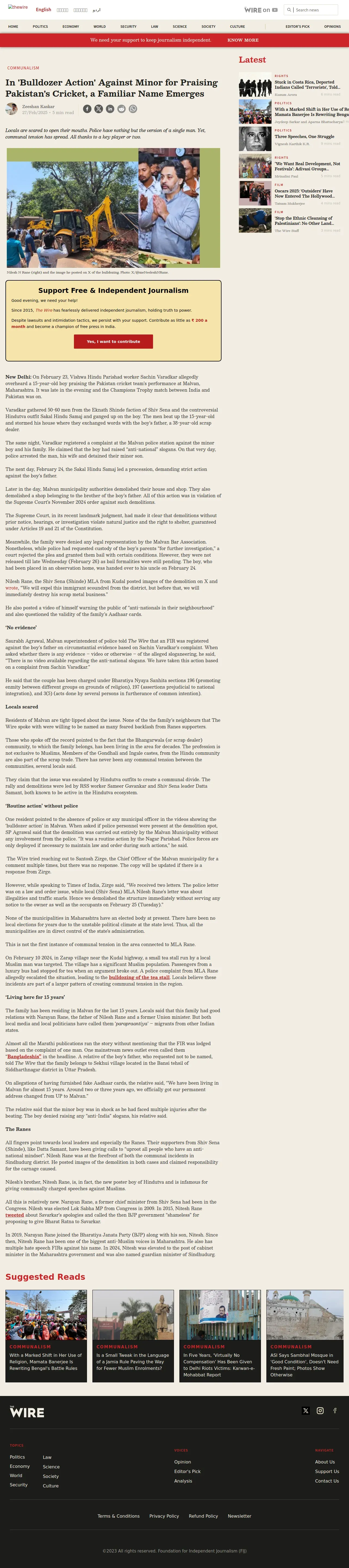 https://thewire.in:443/communalism/maharashtra-bulldozer-pakistan-cricket-nilesh-rane