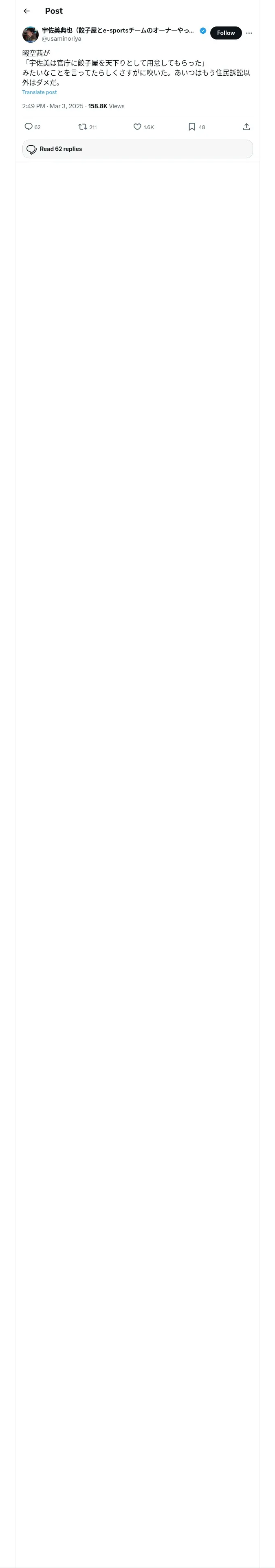 https://x.com:443/usaminoriya/status/1896437827476619383?t=ZVOQHv6yL3ZrM2CMtMv6BA&s=19