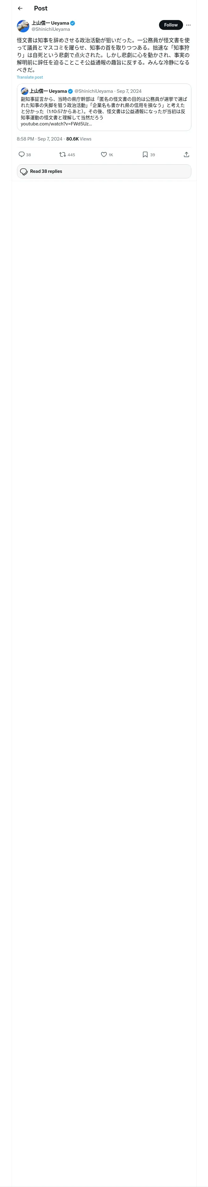 取得元URL: https://x.com:443/ShinichiUeyama/status/1832388053354373616