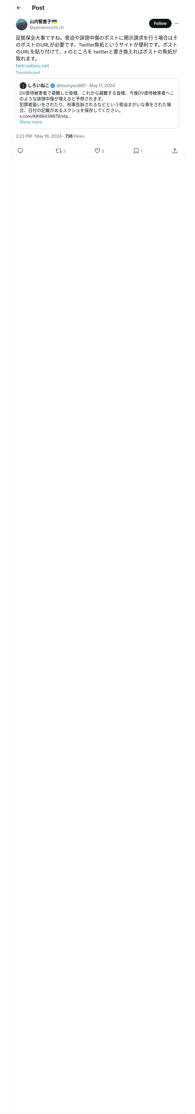 https://x.com:443/yamanouchi_ch/status/1791701114297180605?t=uVe0NqmdE9ObZjMJhMQWrg&s=19