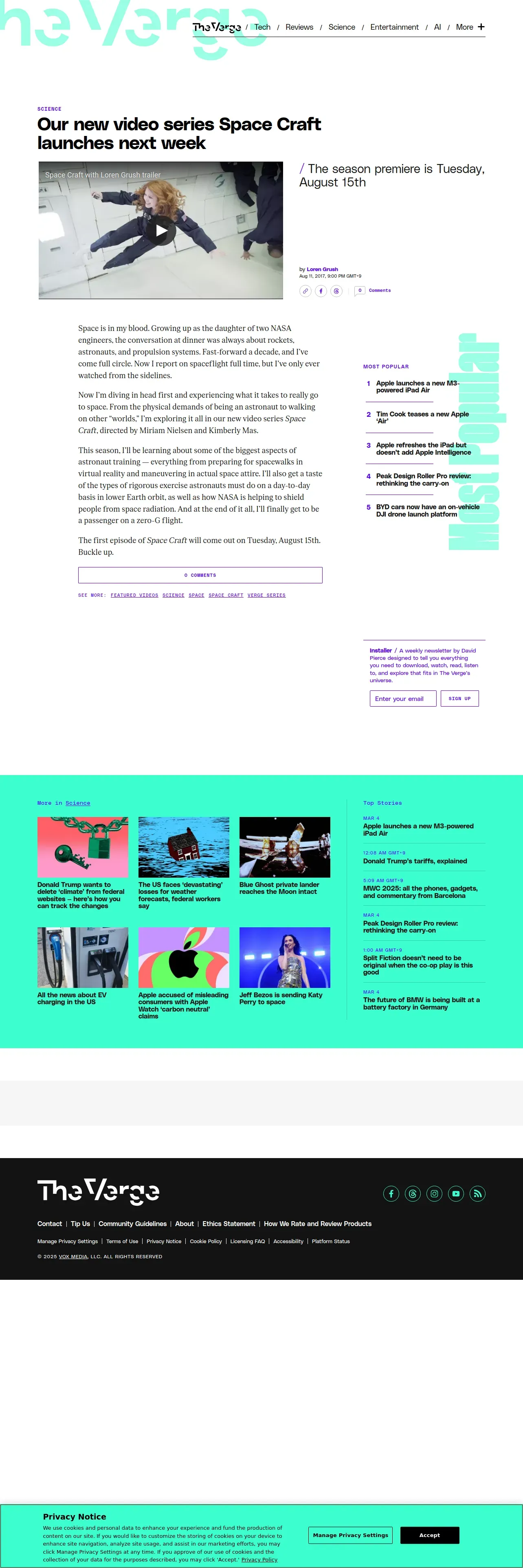 https://www.theverge.com:443/2017/8/11/16127448/space-craft-with-loren-grush-trailer-video-series-release-date