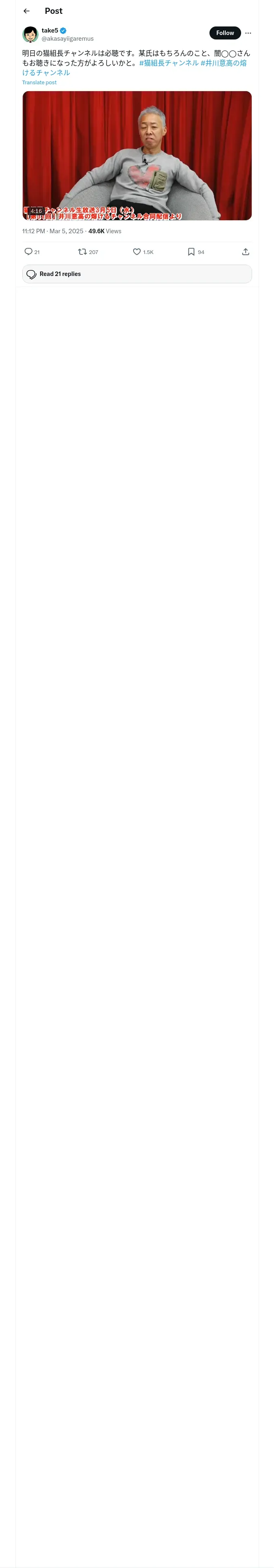 取得元URL: https://x.com:443/akasayiigaremus/status/1897289149125943643