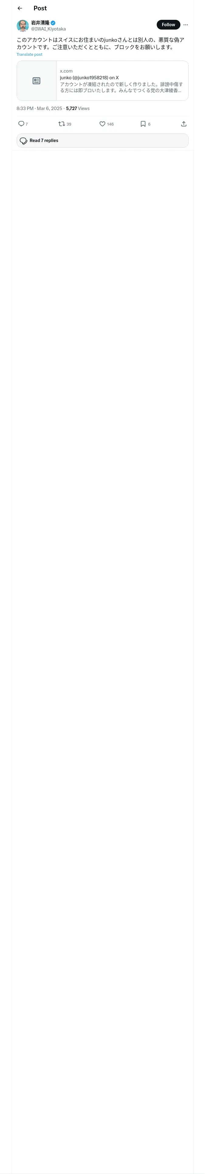 https://x.com:443/IWAI_Kiyotaka/status/1897611466204954900