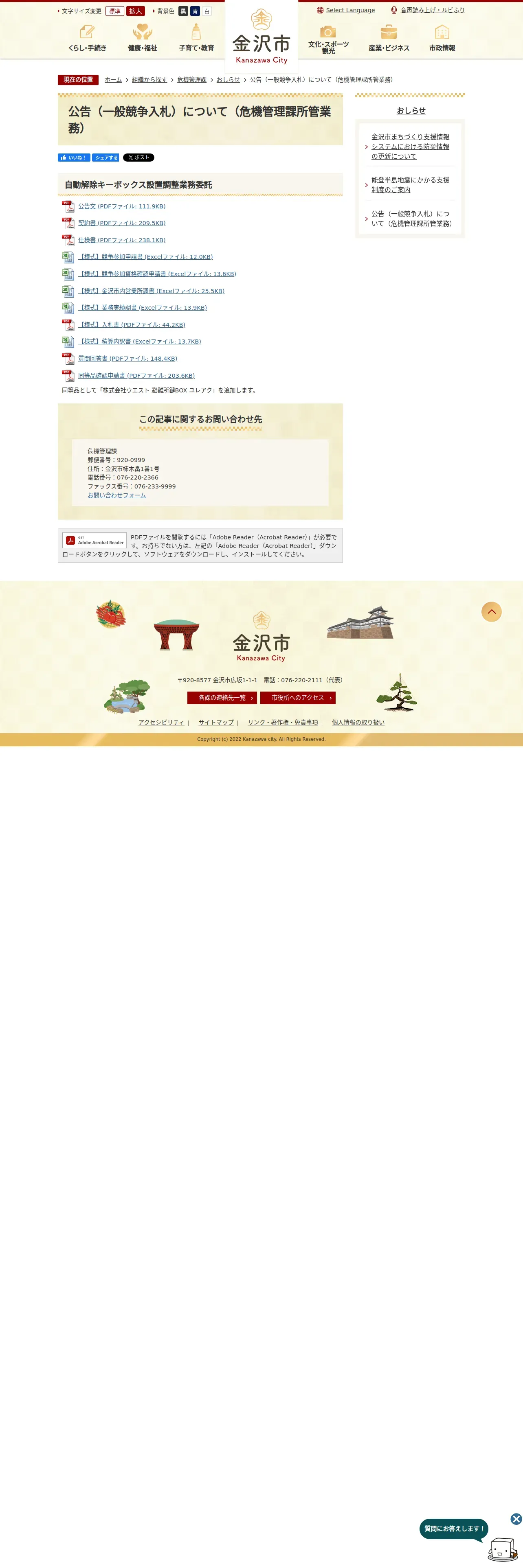 https://www4.city.kanazawa.lg.jp:443/soshikikarasagasu/kikikanrika/oshirase/28471.html