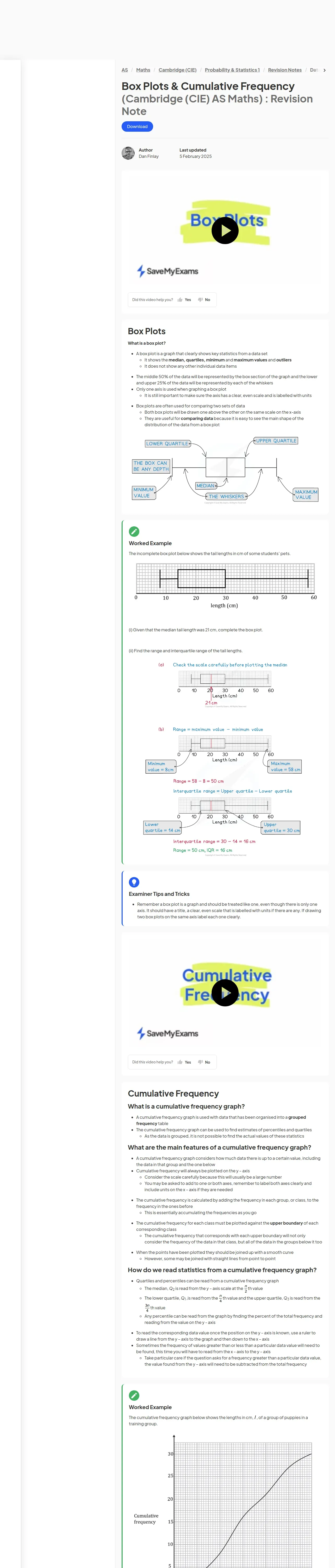 https://www.savemyexams.com:443/as/maths/cie/20/probability-and-statistics-1/revision-notes/data-presentation-and-interpretation/representation-of-data-/box-plots-and-cumulative-frequency/