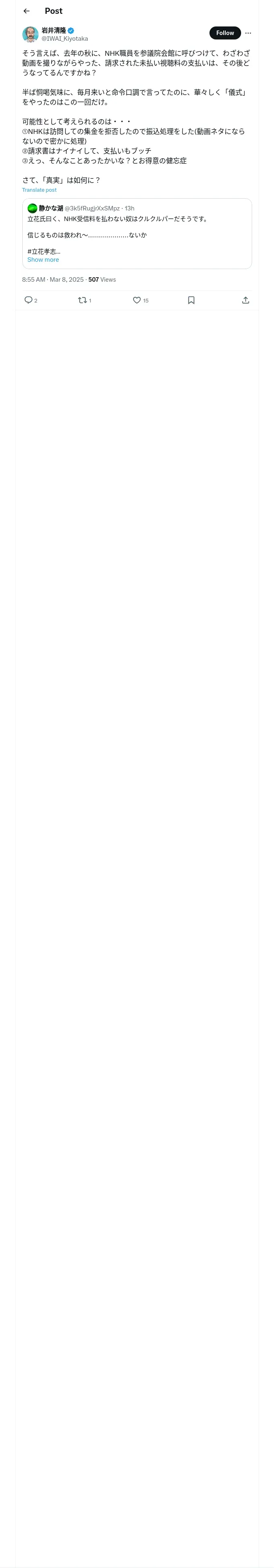 https://x.com:443/IWAI_Kiyotaka/status/1898160703518973956