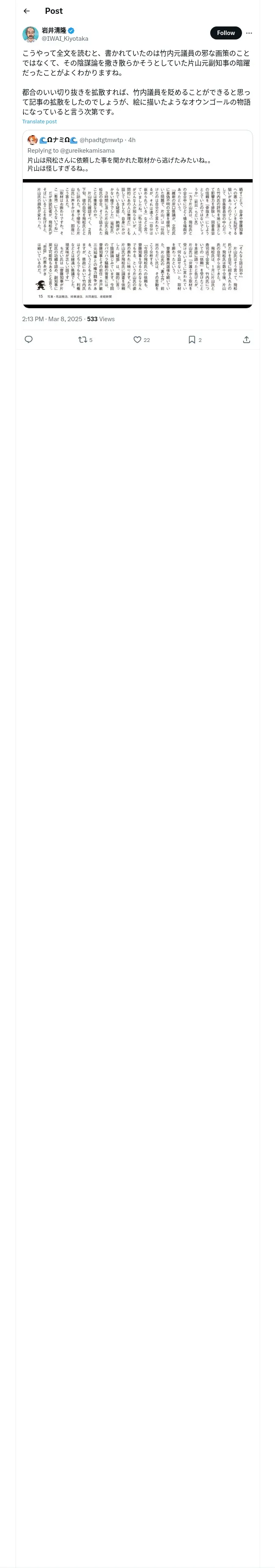 https://x.com:443/IWAI_Kiyotaka/status/1898240590988689774
