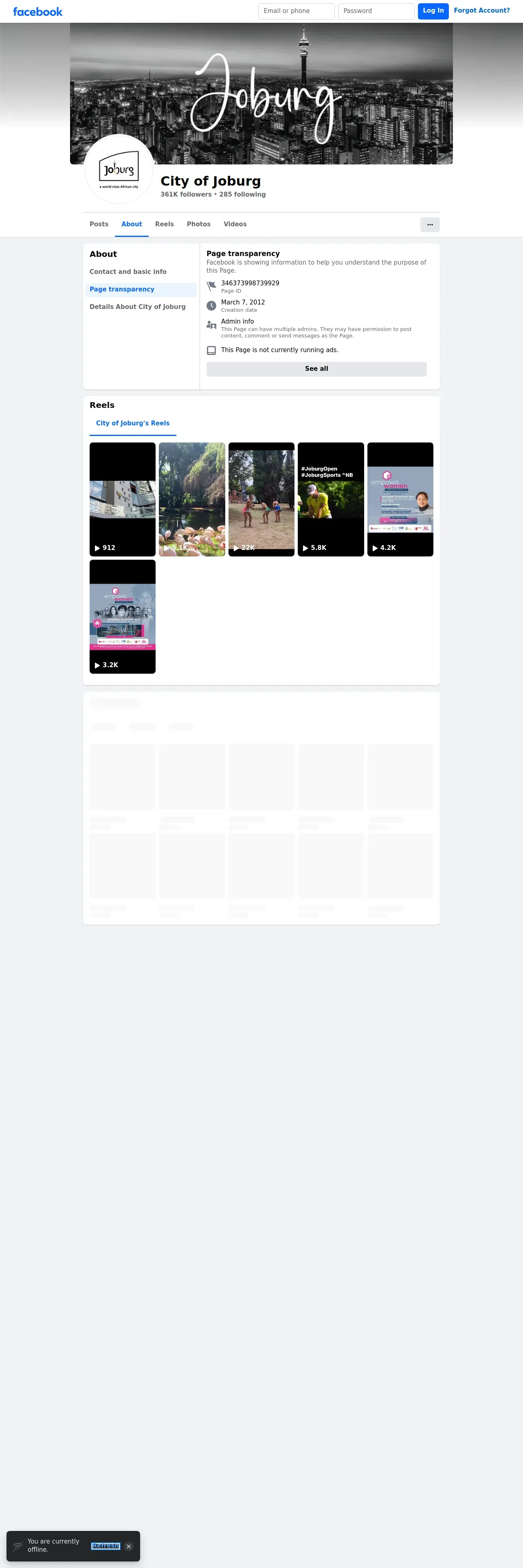 取得元URL: https://www.facebook.com:443/CityofJoburg/about_profile_transparency