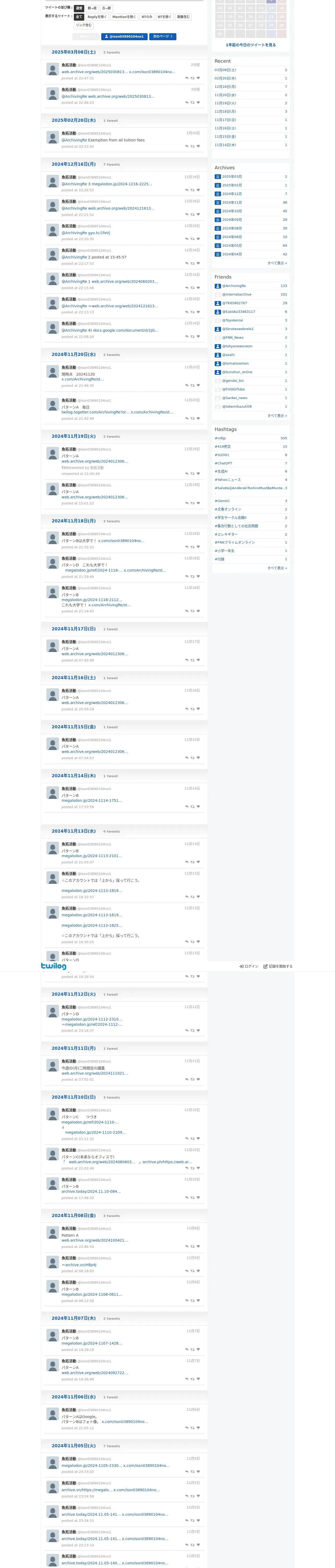 取得元URL: https://twilog.togetter.com:443/issn03890104no1?status=fetchSuccess