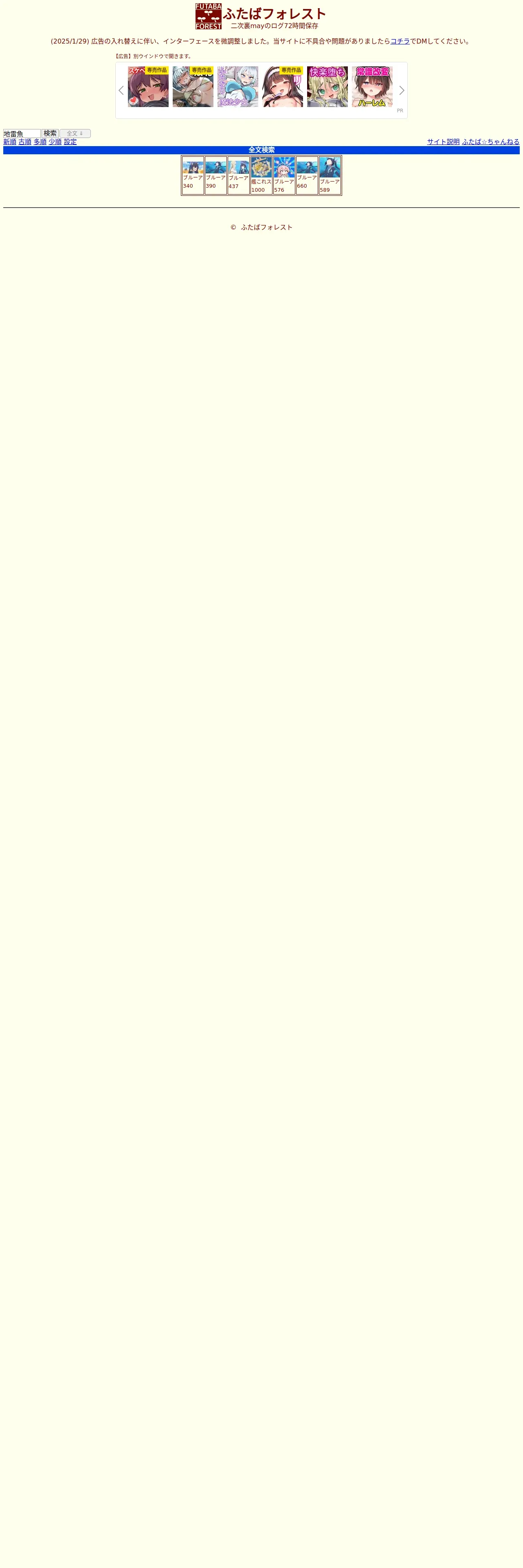 https://futabaforest.net:443/index.htm?sm=2&words=%E5%9C%B0%E9%9B%B7%E9%AD%9A