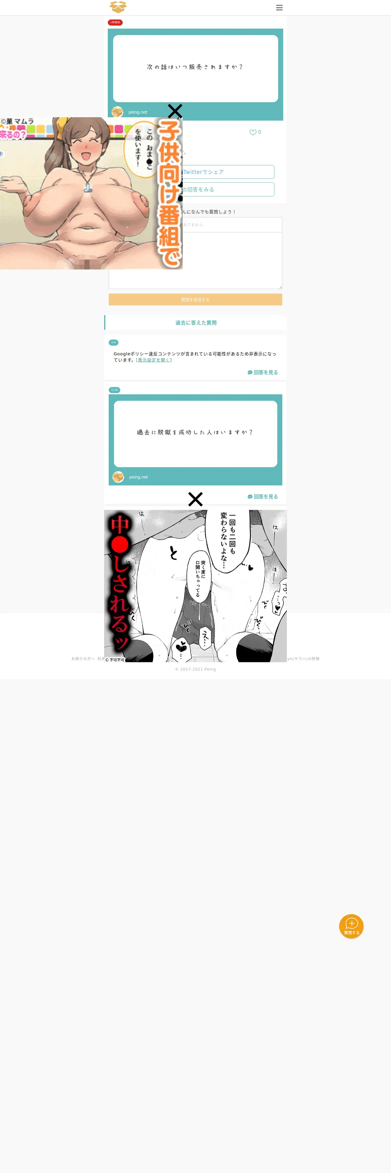 取得元URL: https://peing.net:443/ja/q/9679f1b1-bdea-41ef-851a-26070c85bc4a