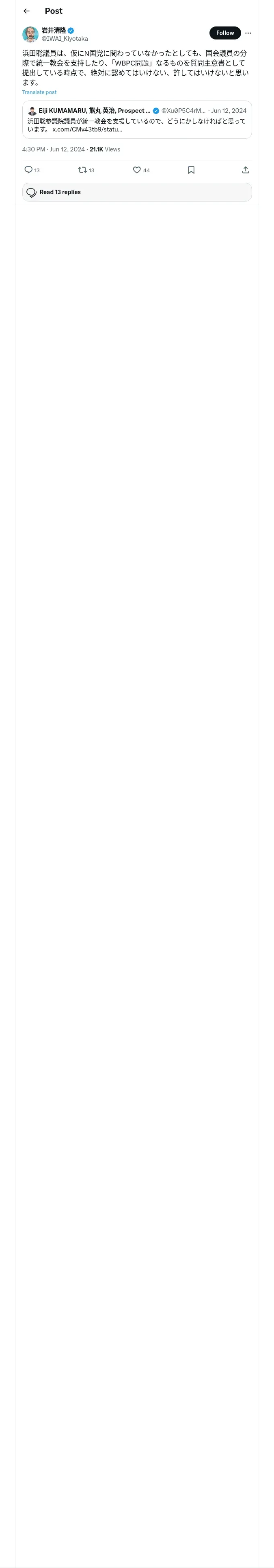 https://x.com:443/IWAI_Kiyotaka/status/1800792699664306392