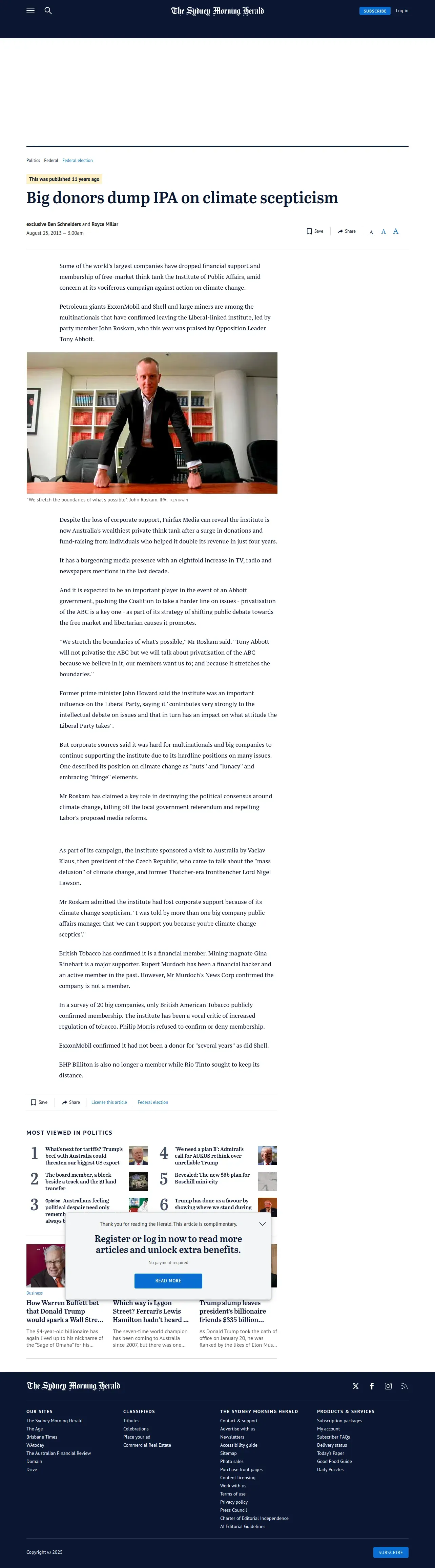 https://www.smh.com.au:443/politics/federal/big-donors-dump-ipa-on-climate-scepticism-20130824-2sigt.html