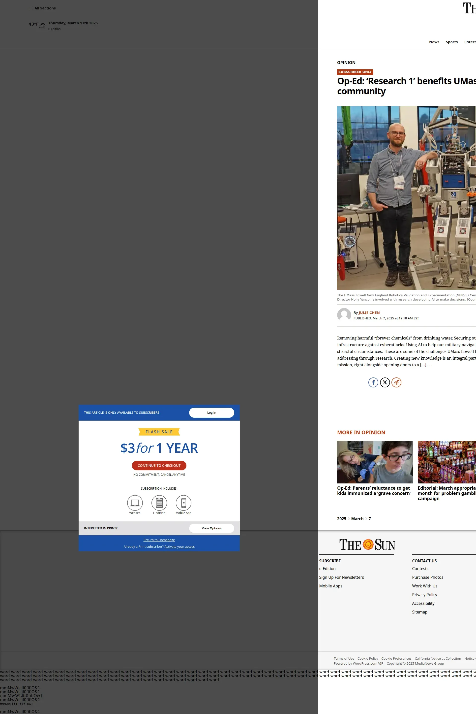 https://www.lowellsun.com:443/2025/03/07/op-ed-research-1-benefits-umass-lowell-students-faculty-and-the-community/