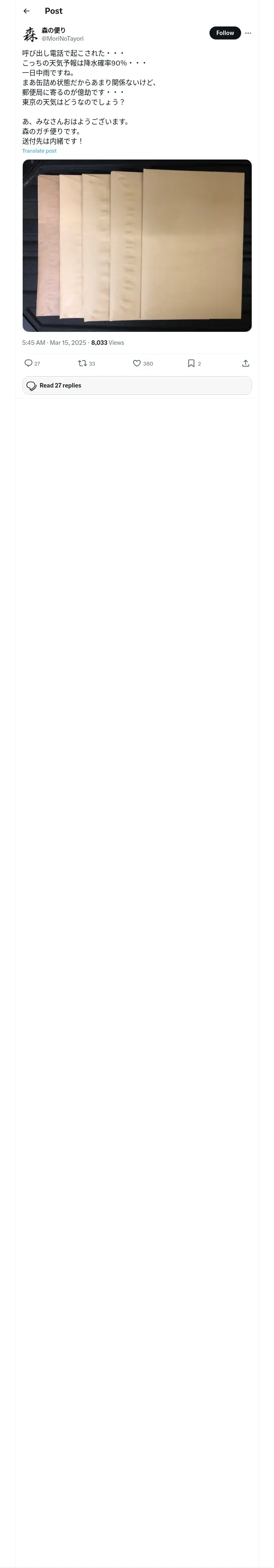 https://x.com:443/MoriNoTayori/status/1900649553834967115