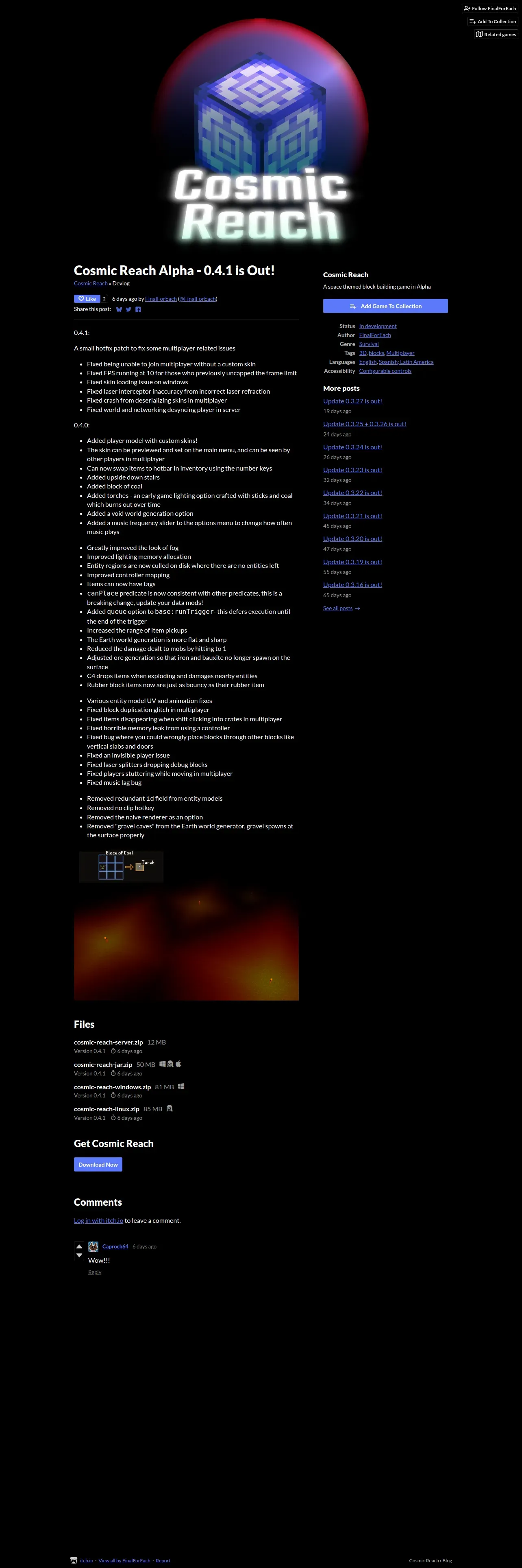 https://finalforeach.itch.io:443/cosmic-reach/devlog/901708/cosmic-reach-alpha-041-is-out