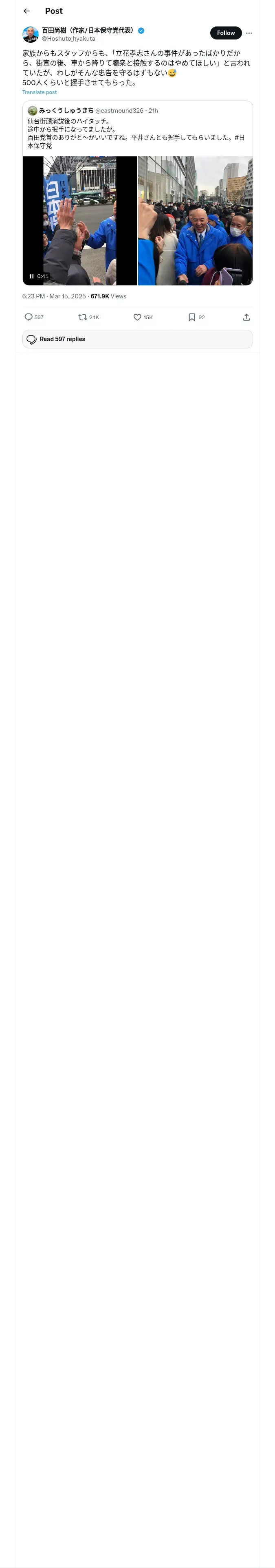 https://x.com:443/Hoshuto_hyakuta/status/1900840323699667365