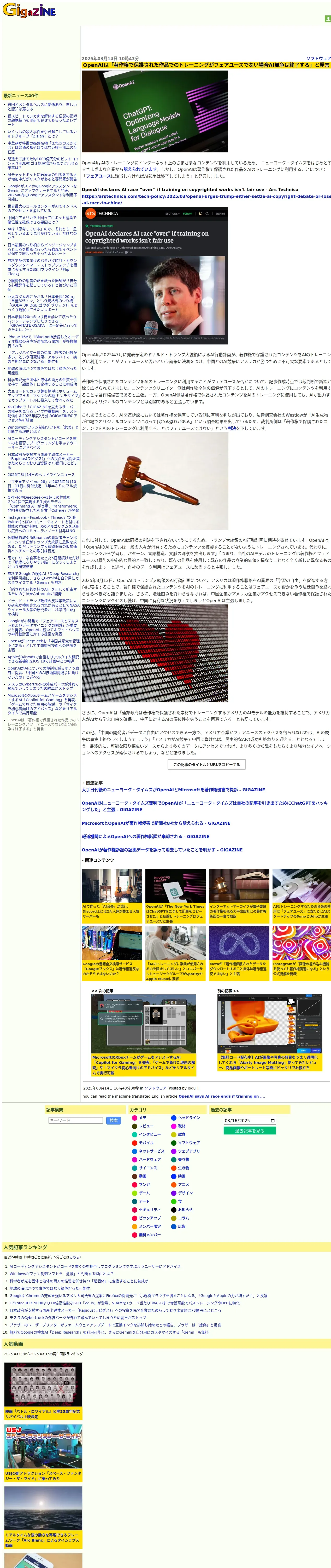 https://gigazine.net:443/news/20250314-openai-ai-race-over-training-copyrighted-fair-use/