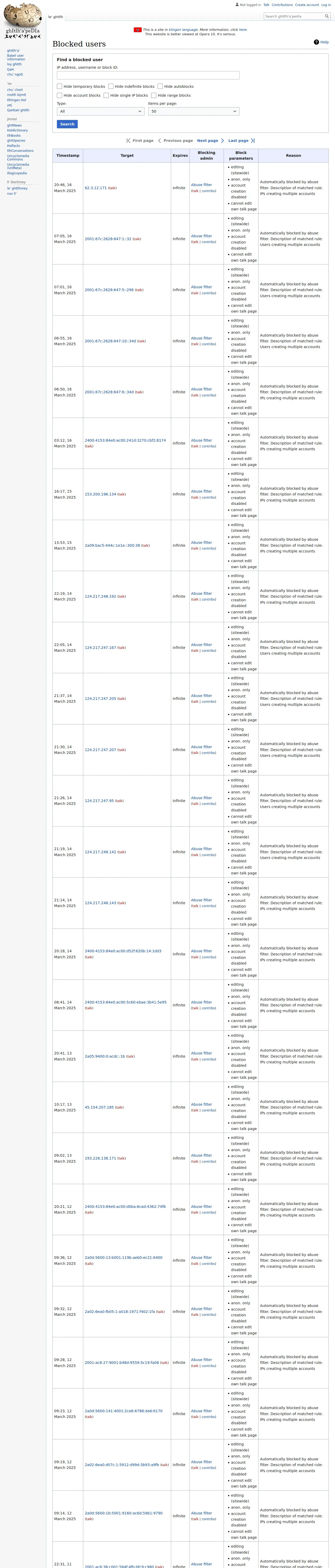 https://tlh.uncyclopedia.info:443/wiki/Special:BlockList