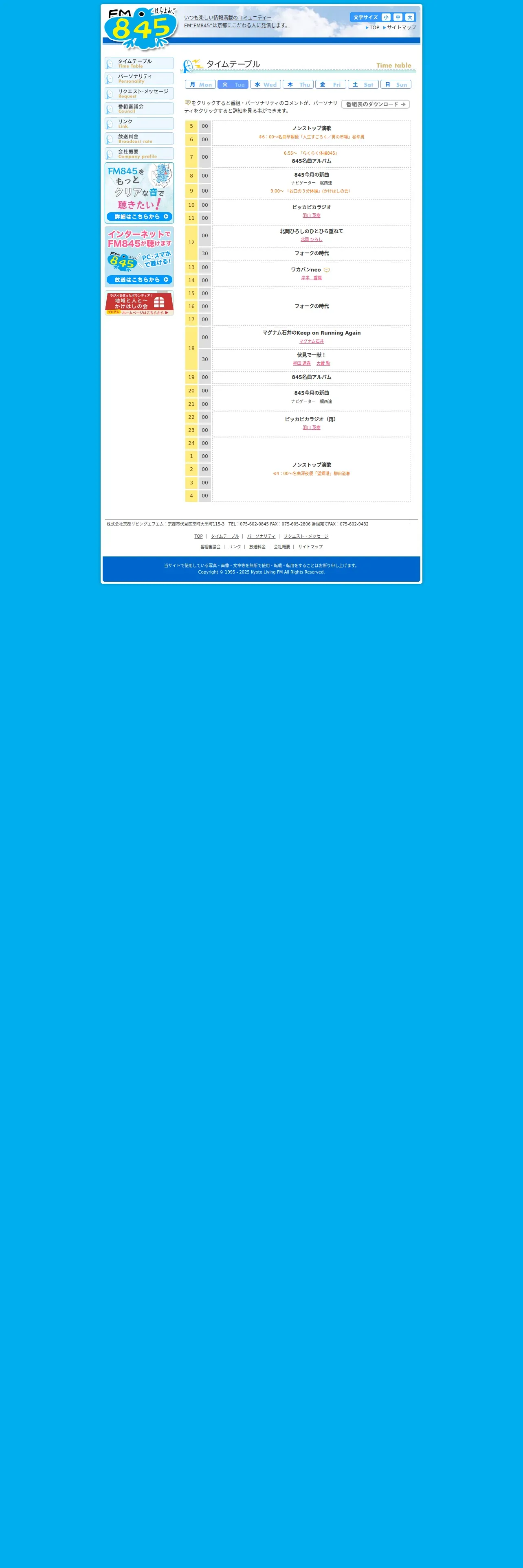 https://www.fm-845.com:443/timetable/tue.html