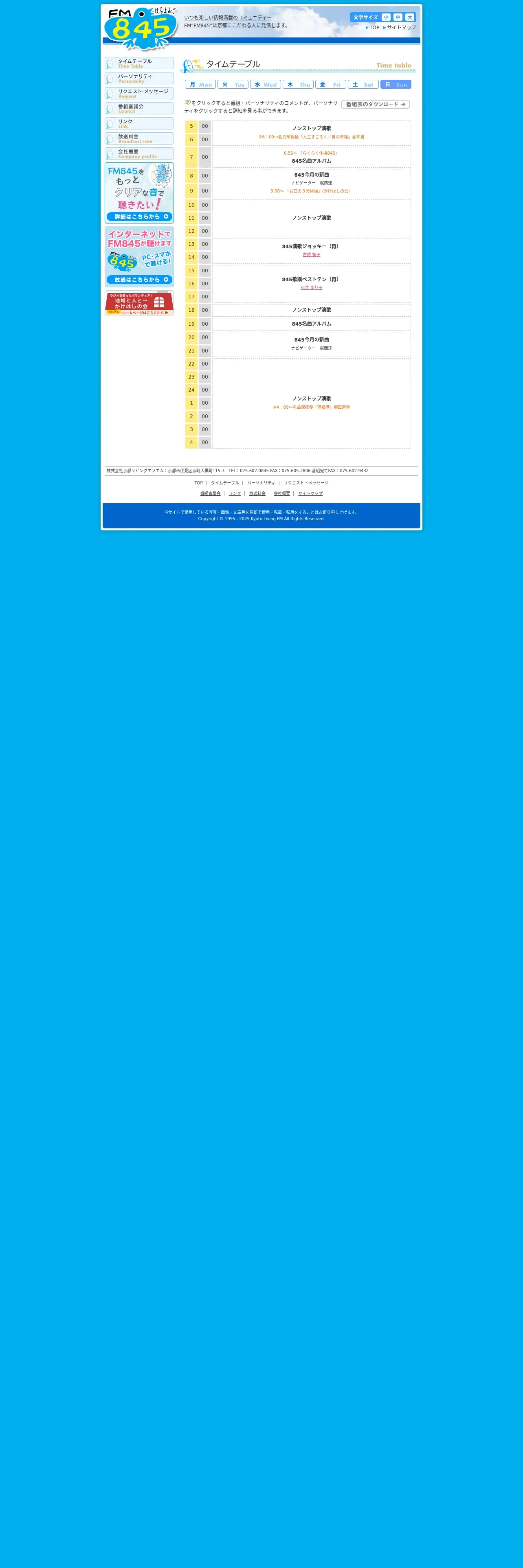 取得元URL: https://www.fm-845.com:443/timetable/sun.html