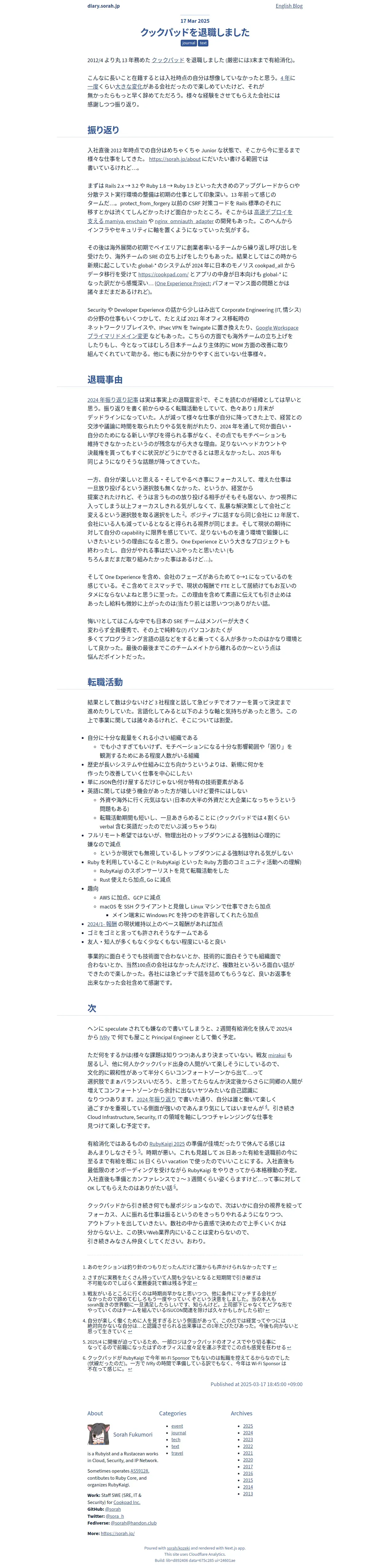 https://diary.sorah.jp:443/2025/03/17/leaving-cookpad