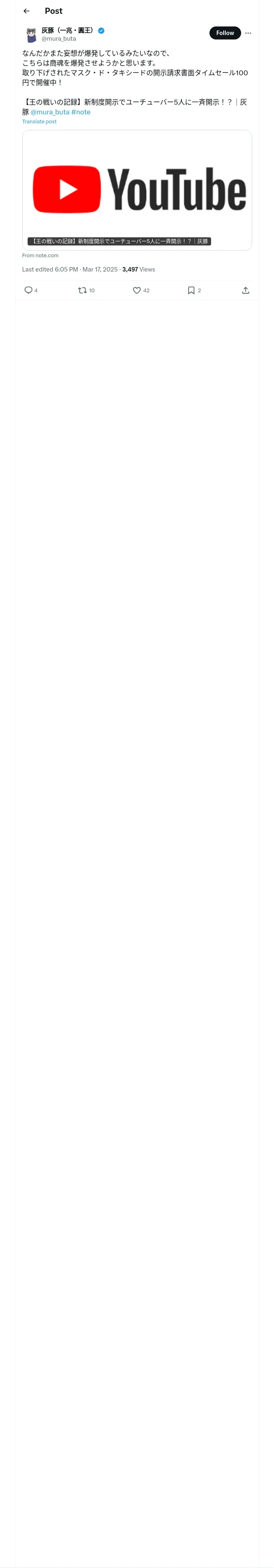 取得元URL: https://x.com:443/mura_buta/status/1901560421464875426